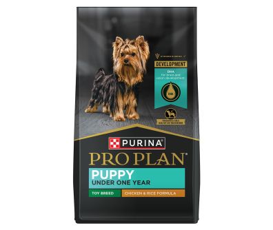 Nourish your growing toy breed puppy with Purina Pro Plan Brand Dog Food Puppy Toy Breed Chicken and Rice Formula dry puppy food.