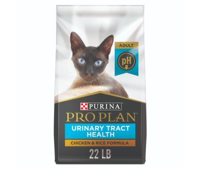 Give your cat the targeted nutrition she needs with Purina Pro Plan SPECIALIZED Urinary Tract Health Formula adult dry cat food. This formula is designed to help your cat maintain her urinary tract health by reducing urinary pH and providing her with low dietary magnesium. Linoleic acid, an omega-6 fatty acid, works to help maintain her healthy skin and coat. This dry food for cats is made with real chicken to offer a taste cats love, and every high-quality ingredient that goes into this adult cat food is carefully selected for a specific purpose so you can feel confident that she's getting the extra-care nutrition she deserves. Give your cat the nutrient-rich meals she needs to thrive by providing her with a dry cat food formulated to meet her unique urinary tract health needs when you make this Purina Pro Plan formula part of her routine.